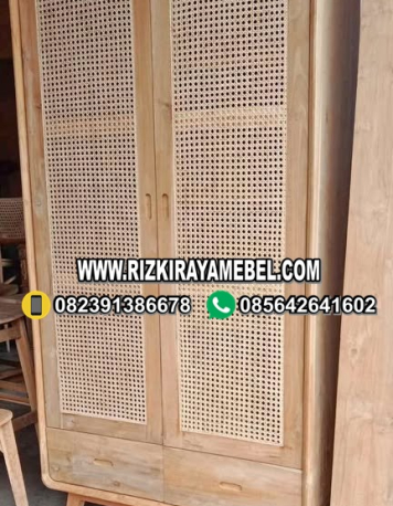 Lemari Pakaian Kayu Jati Kombinasi Rotan